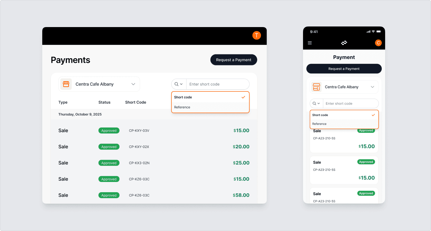 Note: An alternative filtering option is by reference, applicable solely to one-off payments; this is addressed within the ‘Request a Payment’ process outlined below.