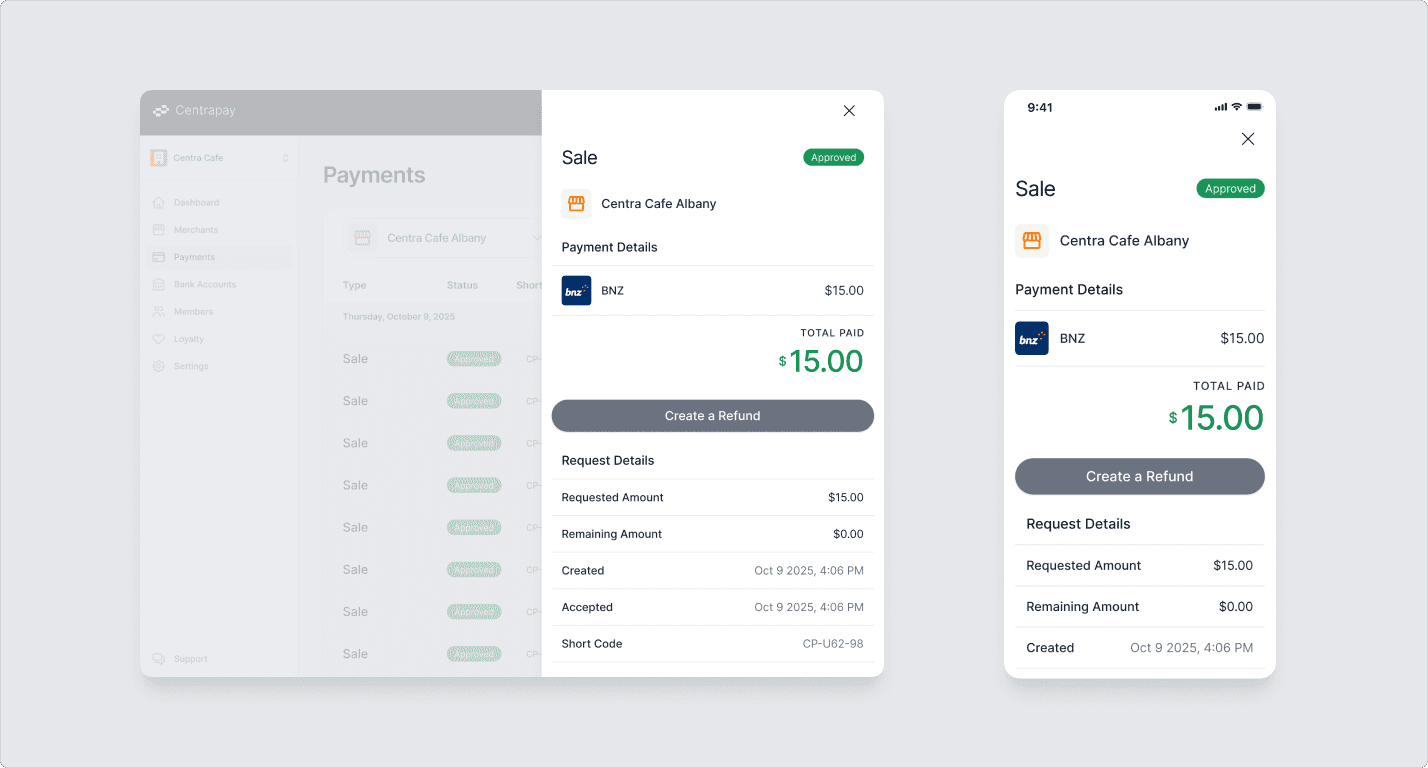 Owner | Request a Payment, view transactions & process a refund |